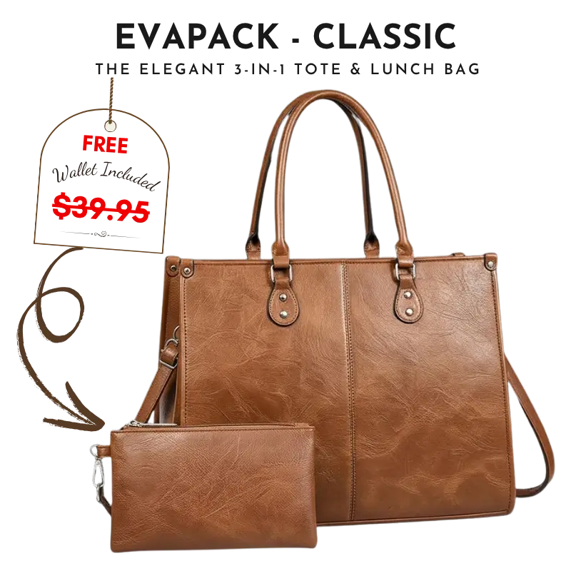 EvaPack™ transforms your daily carry — combining your purse, lunch bag, and laptop tote into one sleek essential. Designed for women on the move.